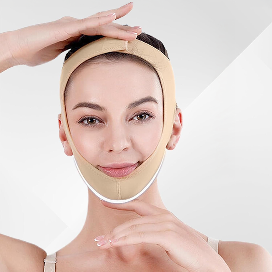- Grâce à une pression ciblée, la gaine sculpte les volumes en limitant leur expansion, tout en rehaussant le menton pour un effet lift naturel.